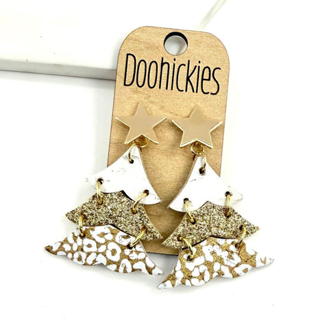 2.5" Shimmer Gold Leopard Christmas Trees Earrings