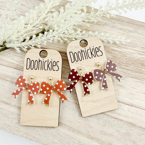 Fall Polka Dot Bow Dangle Acrylic Earrings (2 Color Options)