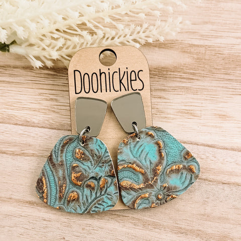 Make a bold statement with the Long Bronze Trapezoid and Embossed Western Jasmine Earring Collection. These eye-catching earrings blend sleek bronze tones with intricate embossed details, adding a playful yet sophisticated touch to your wardrobe. Perfect for turning heads and adding a dash of Western charm to any outfit.